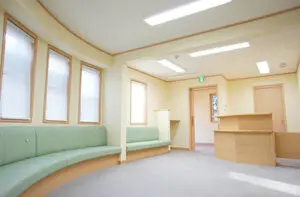 野沢3丁目内科の入口はバリアフリーになっているため、お年寄りやお体の不自由な方でも安心です。加えて病院内にはAED(自動体外式除細動器)が装備しており、もしもの際にも対応できるようにしております。